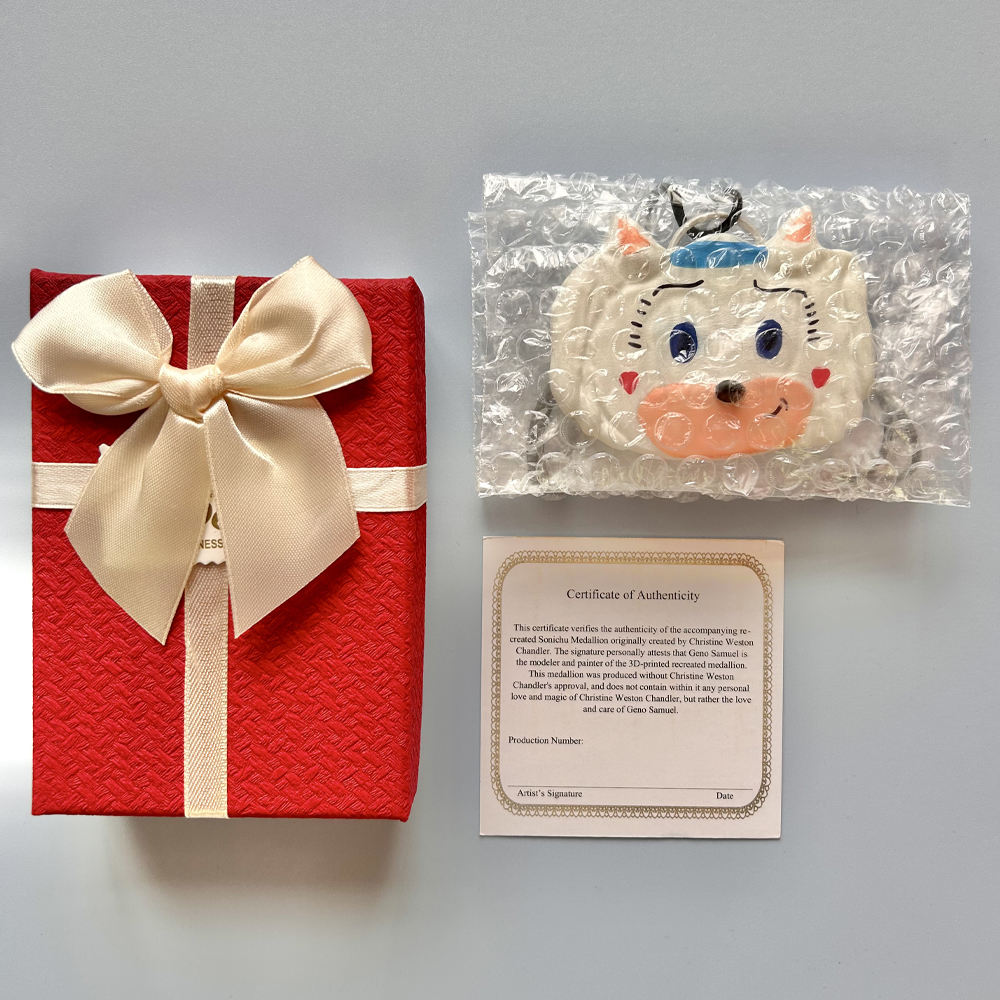 Resin-printed medallion with necklace and Certificate of Authenticity, modeled, painted, AND signed by Geno Samuel, maker of Chris Chan: A Comprehensive History. Based on the Angelica Rosechu Medallion originally created by Christine (née Christian) Weston Chandler, aka Chris Chan.